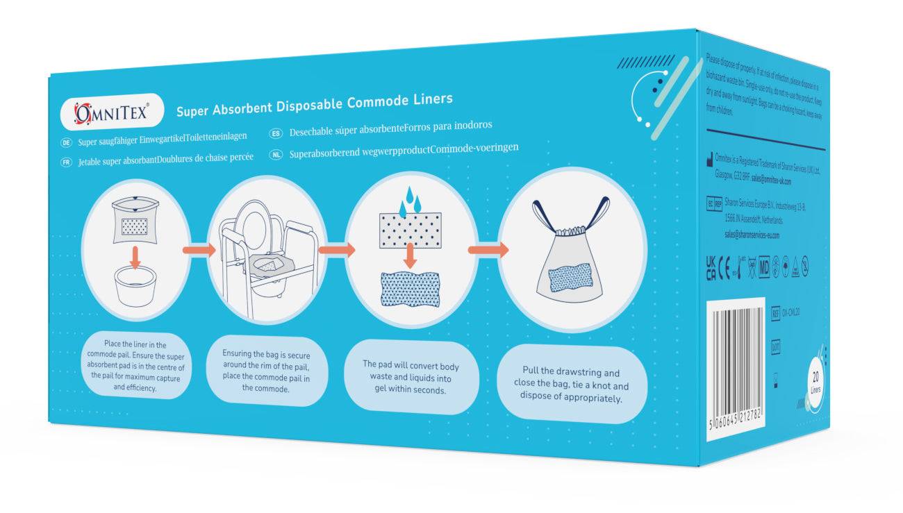 Omnitex 2500ml engangskommode/sengegrydebeklædning Æske med 20 stk | Product Description